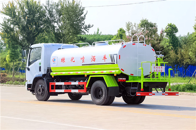 2、后灑:利用裝于權(quán)車(chē)后部的兩個(gè)噴嘴將水噴成均勻的扇表形面,向路面灑水;后灑可達(dá)10米寬。