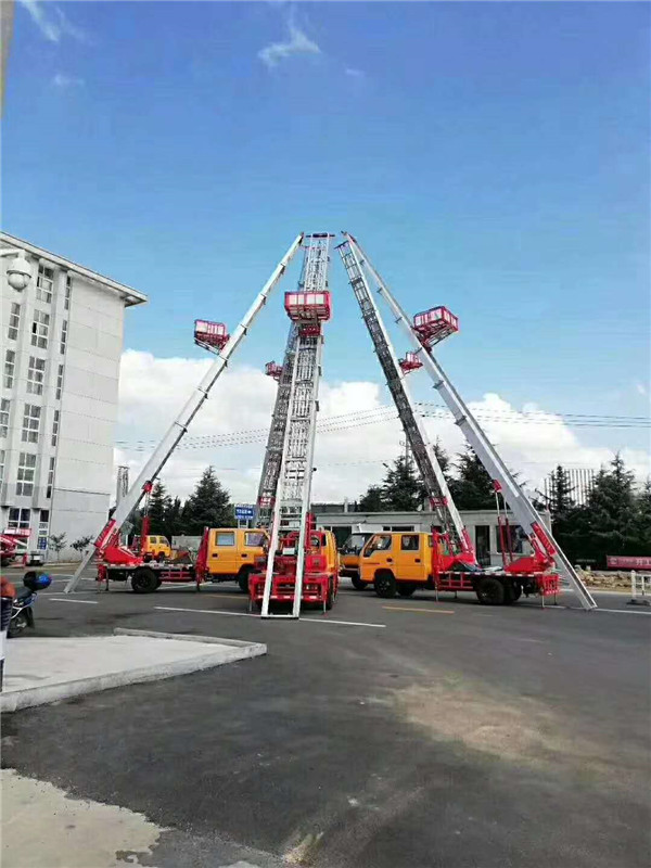 1、云梯搬運車到現(xiàn)場40秒工作狀態(tài),5分鐘全部展開,非常快達到設計高度。