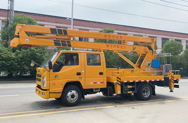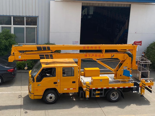 江鈴順達(dá)12米高空作業(yè)車:采用江鈴115馬力,雙排駕駛室,五檔變速箱,7.00R16鋼絲胎,帶方向助力動(dòng)力轉(zhuǎn)向,軸距3360,帶排氣制動(dòng),ABS,作業(yè)高度16米,工作斗限載200kg,液壓360度全回轉(zhuǎn),三節(jié)折疊臂,單液壓舉升缸,雙向平衡閥,電控操作舉升臂,1噸可伸縮吊鉤可伸縮1米,四支液壓油缸可調(diào)試支腿,帶雙向液壓鎖。