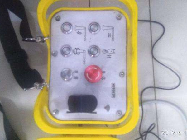 無線遙控隨車吊遙控器輸出直接控制交流接觸器從而控制天車??刂齐娐凡捎檬┠偷码姎猓ɑ蛭鏖T子)。選用按鍵式遙控方案:采用塔吊(吊車、隨車吊)無線遙控器廠家自主研發(fā)的多速遙控器,結(jié)合電控柜,分別控制大車、小車、吊鉤運行,實現(xiàn)天車五檔位運行,起步、調(diào)速平穩(wěn)可靠,可同時實現(xiàn)四機(jī)構(gòu)同時動作,操控性強(qiáng),直觀性好。優(yōu)點:方便,直觀,使用壽命長,電池容量大,操控性好。選型及價格、相關(guān)技術(shù)要求由于天車原為凸輪控制,為機(jī)械觸點,所以加裝遙控后,需一個繼電器柜,通過交流接觸器實現(xiàn)原凸輪觸點動作。電控柜方案一(10T/3.2雙梁雙鉤,大車45A*7,1.5mm2*200m,8點雙速塔吊(吊車、隨車吊)無線遙控器能夠?qū)崿F(xiàn)8點雙速控制。