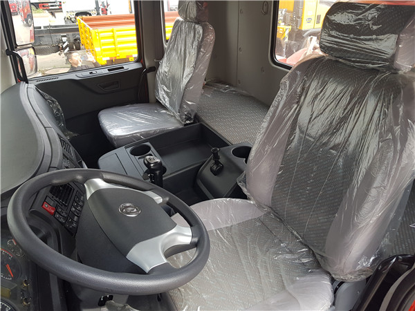 玉柴 270 馬力發(fā)動機,東風(fēng) T5 駕駛室,帶氣囊座椅、遙控中控(一體式)、四鎖合一,帶行駛記錄儀,2150+4400+1350mm 軸距,陜齒 9 檔帶高低檔變速箱,帶同步器、取力器,前橋5.5 噸后橋11.5噸,“雙卡加強型”平衡懸架, 300mm直通三層局部四層車架,帶連接板,11.00R20 鋼絲胎,原廠空調(diào);
