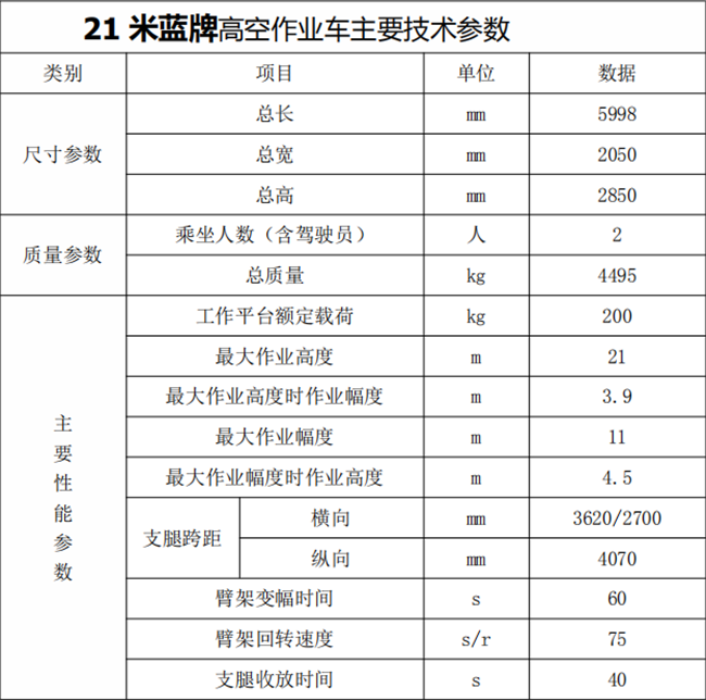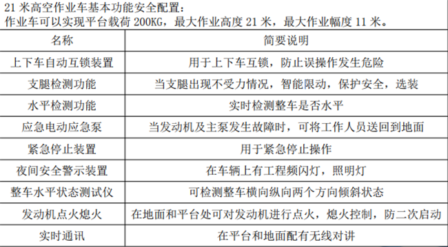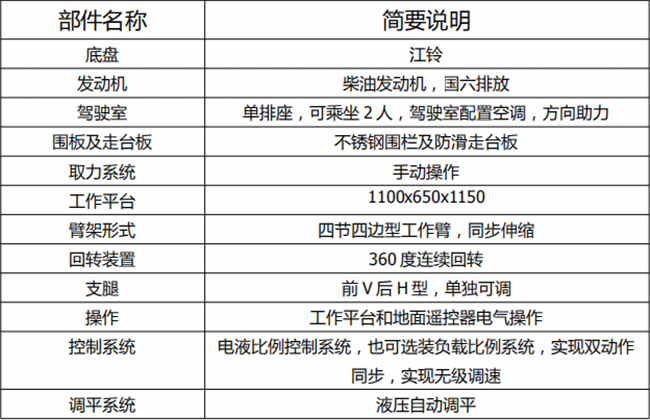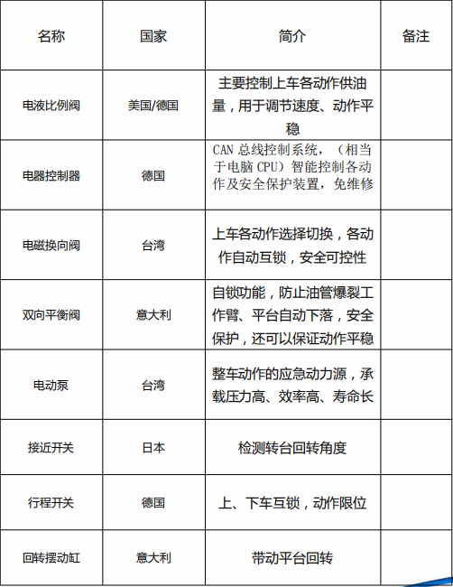 精品21米藍(lán)牌高空作業(yè)車配件明細(xì):