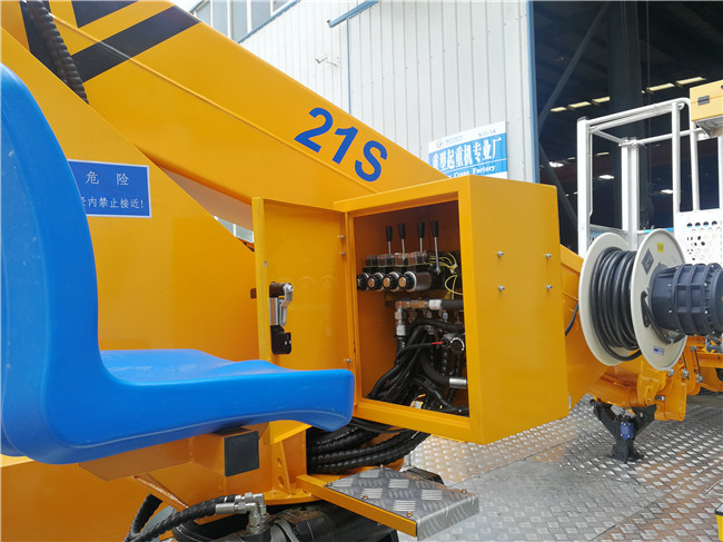 整車電器采用 CAN 總線控制系統(tǒng),線路整齊、簡易。整車有三處操作: 平臺操作,也可在地面用有線或無線操作,更方便觀察作業(yè)空間,安全 可靠,工作效率高。