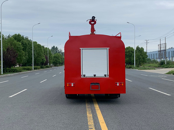 1)消防車功能:該車安裝了后置式消防泵,工作壓力在1.0 Mpa,在發(fā)生為災(zāi)時(shí)啟動(dòng)消防泵,關(guān)閉灑水功能閥門,操作消防炮,射程達(dá)55米以上,消防炮流量大,射程遠(yuǎn),即可滅火。